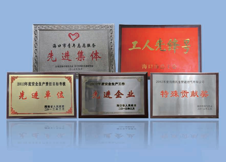 榮獲金融貸款誠(chéng)信企業(yè);??谑腥嗣裾C發(fā)的2012年度安全生產(chǎn)工作先進(jìn)企業(yè)。